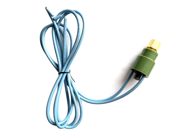 When the system pressure increases to the rated pressure, the snap disc in the sensor will snap and push the lock-in disc to the locked position through the transfer rod, at the same time the lock-in disc can cut-off the switch through the transfer pin. When the pressure is decreased, the snap disc will automatically reset, but the lock-in disc is in the locked position and can not automatically reset. Only when the button is pushed by external force, the lock-in disc will reset and cut-in the switch to recover the system to the normal working state.